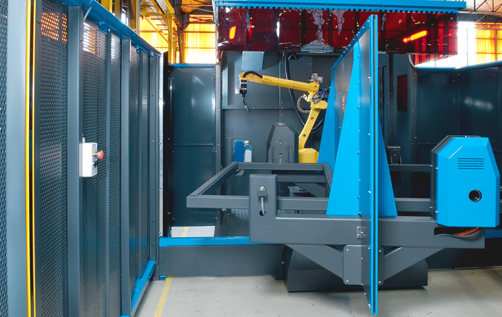 Dédiée à la fabrication de pièces récurrentes, soudées en série, cette cellule robotisée de soudage permet aux équipes de 4J Chaudronnerie de gagner considérablement en productivité. Avec cette machine, nos temps de fabrication peuvent être divisés par 4 ou 5 sur les pièces de série nécessitant des soudures importantes.